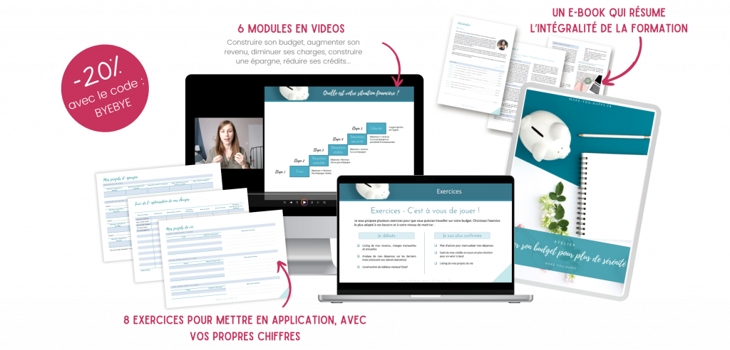 J’ai effectivement créer un tableau Excel de gestion de budget en utilisant les méthodes dont je parle dans l’atelier, MAIS, il n’est pas du tout obligatoire de l’avoir. Ce n’est pas tellement lié, toutes les méthodes, astuces et conseils sont applicables, qu’importe l’outil utilisé (suivi informatique, papier…)