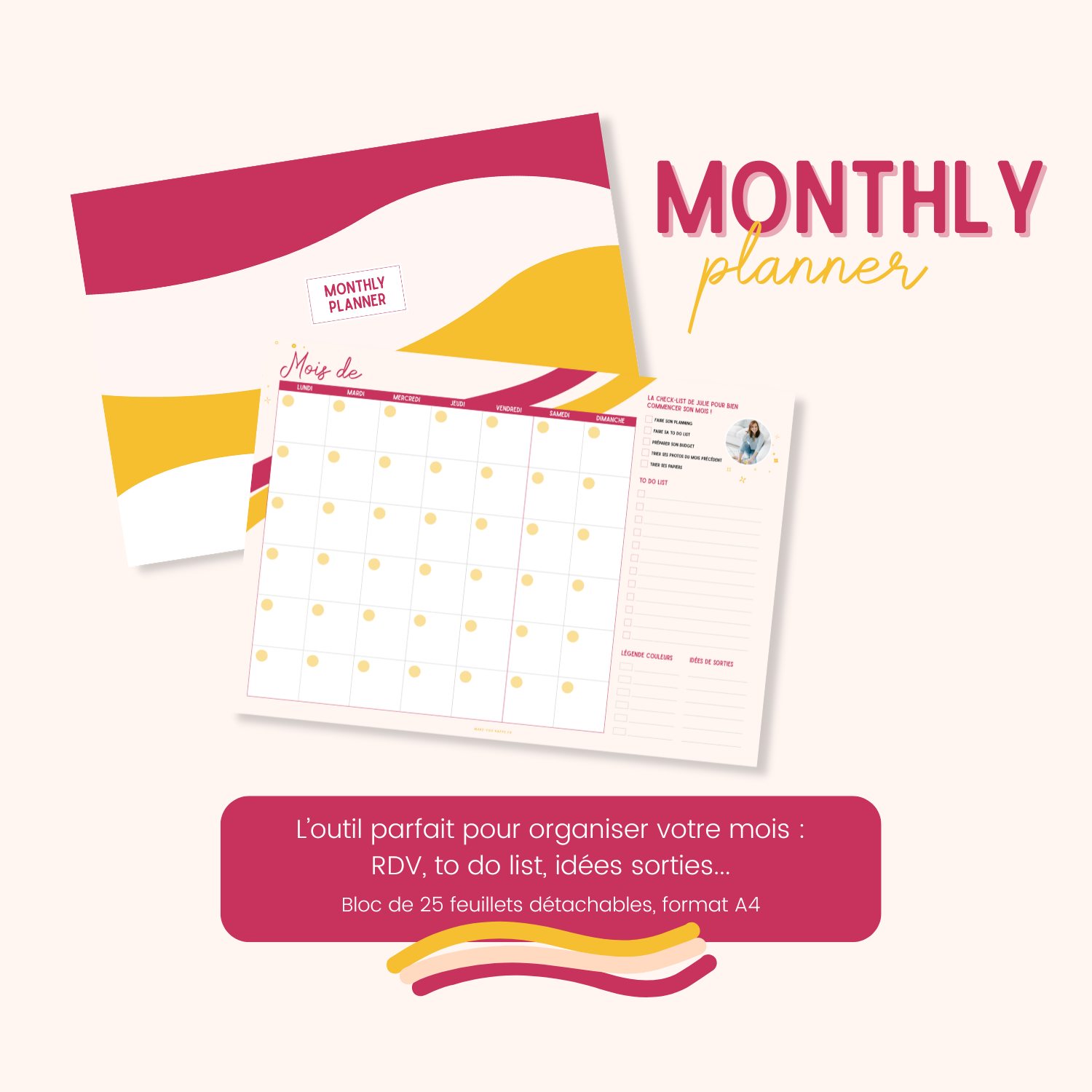 - Monthly Planner : Bloc-notes de 25 pages détachables pour planifier vos mois